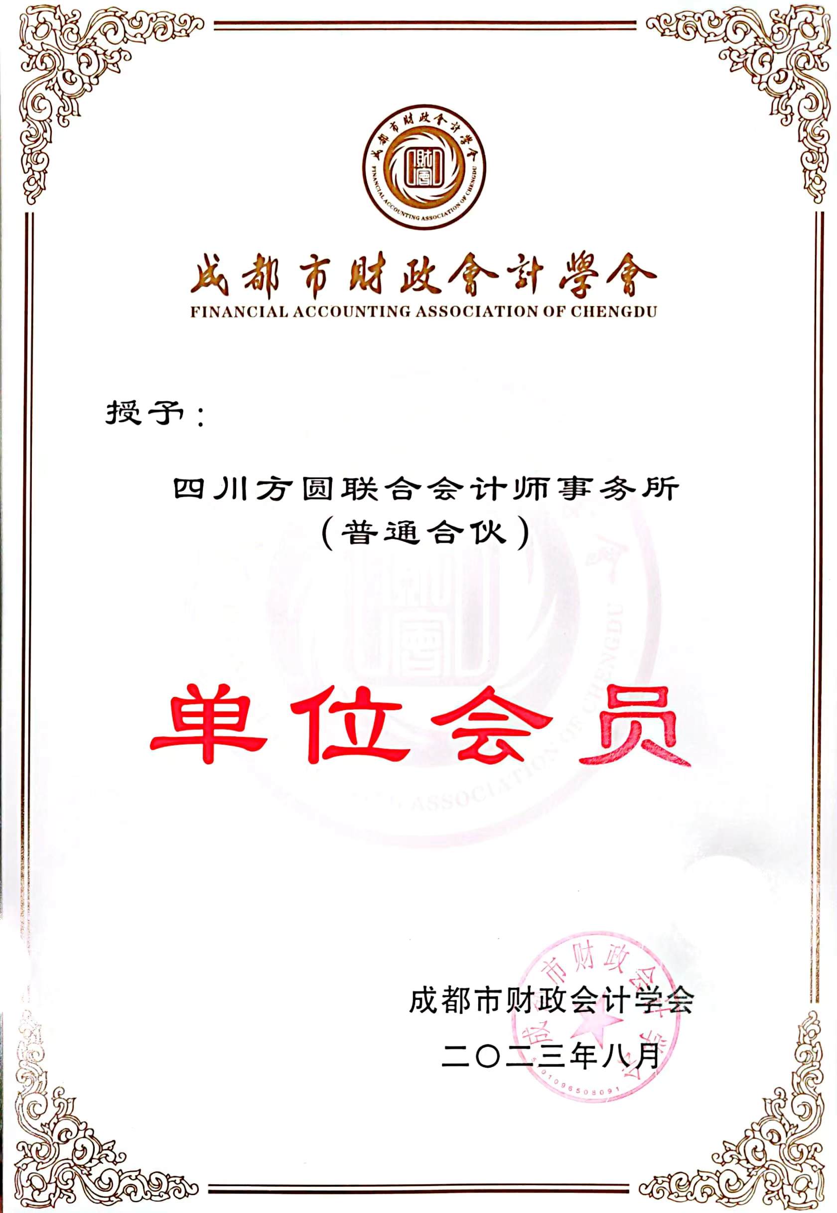 2023年度《成都市财政会计学会单位会员》
